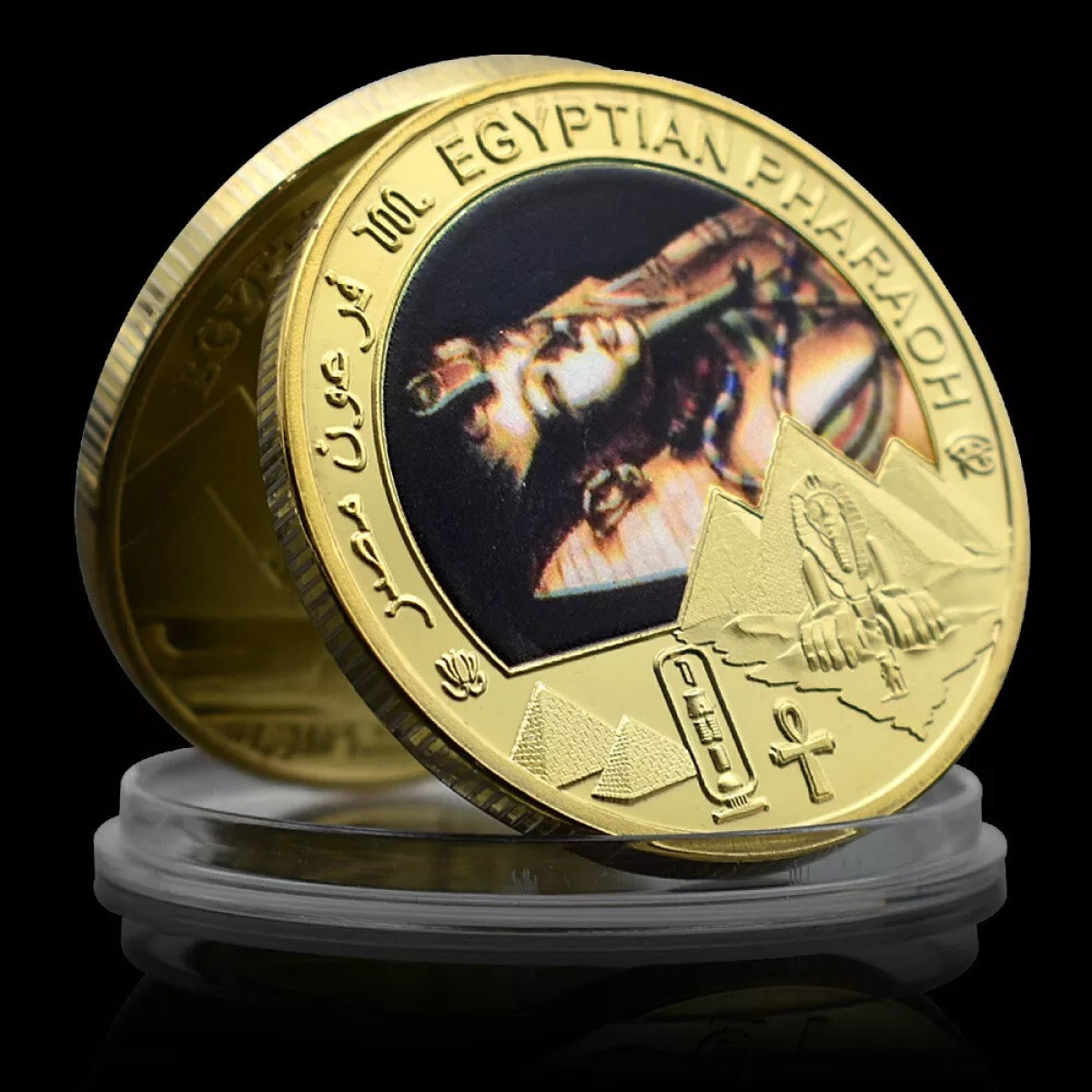 Написи: На монетах є напис “EGYPTIAN PHARAOH“ англійською мовою, а також написи арабською мовою, ймовірно, “| “ (Фараон Єгипту).