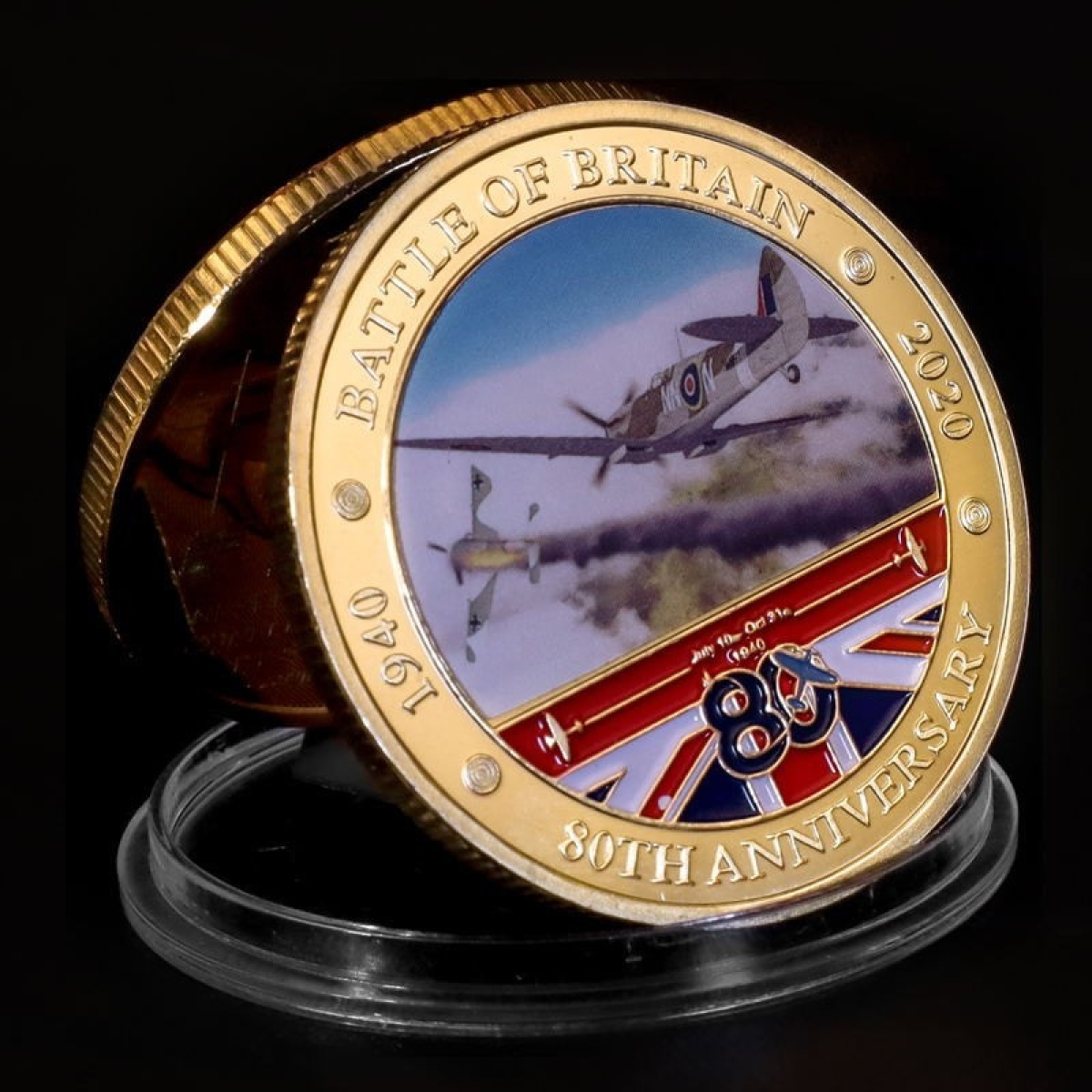 Монета, зображена на знімку, є ювілейною монетою, присвяченою 80-річчя Битви за Британія.