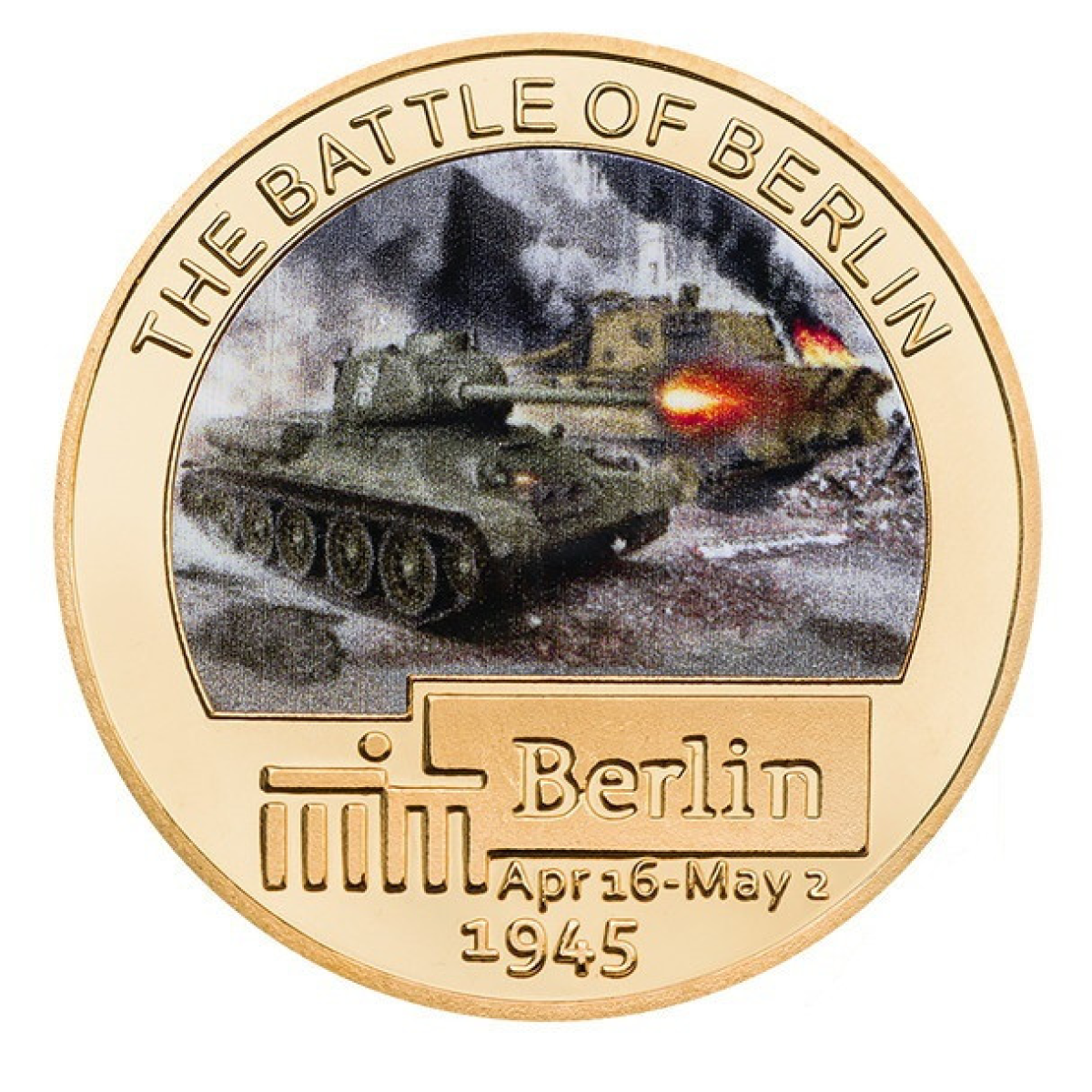 Тематика: Кожна монета присвячена Битві за Берлін, яка проходила з 16 квітня по 2 травня 1945 року, про що свідчить напис “THE BATTLE OF BERLIN Apr 16 May 2 1945“.