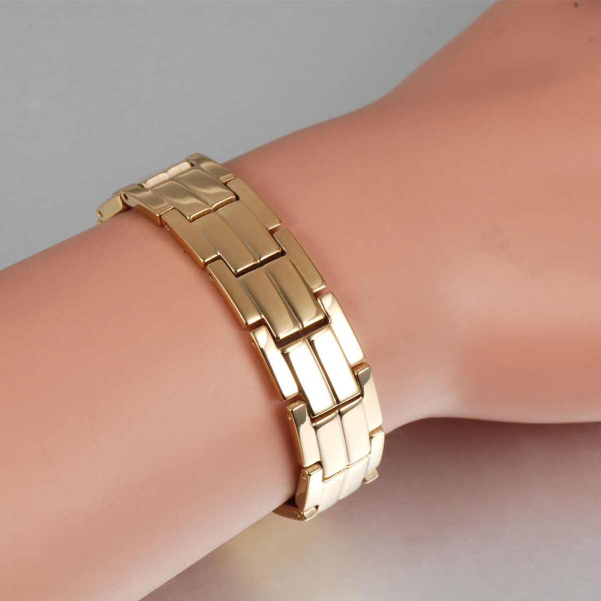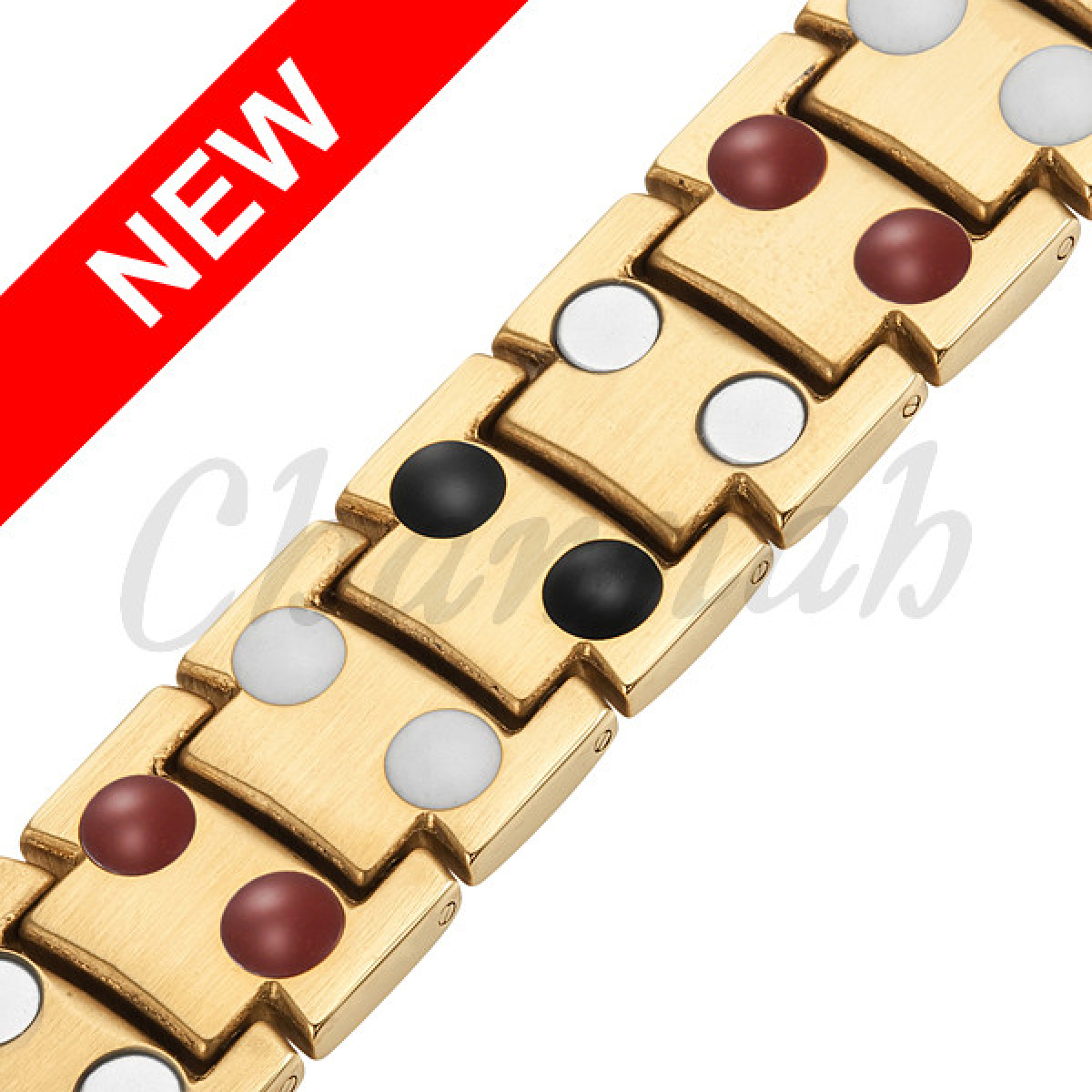 Браслети виготовлені з високоякісної медичної сталі марки 316 L, з покриттям із родію та золота 18 каратів, 3 мікрони. У кожній ланці є неодимовий магніт силою 1800 Гаусів.