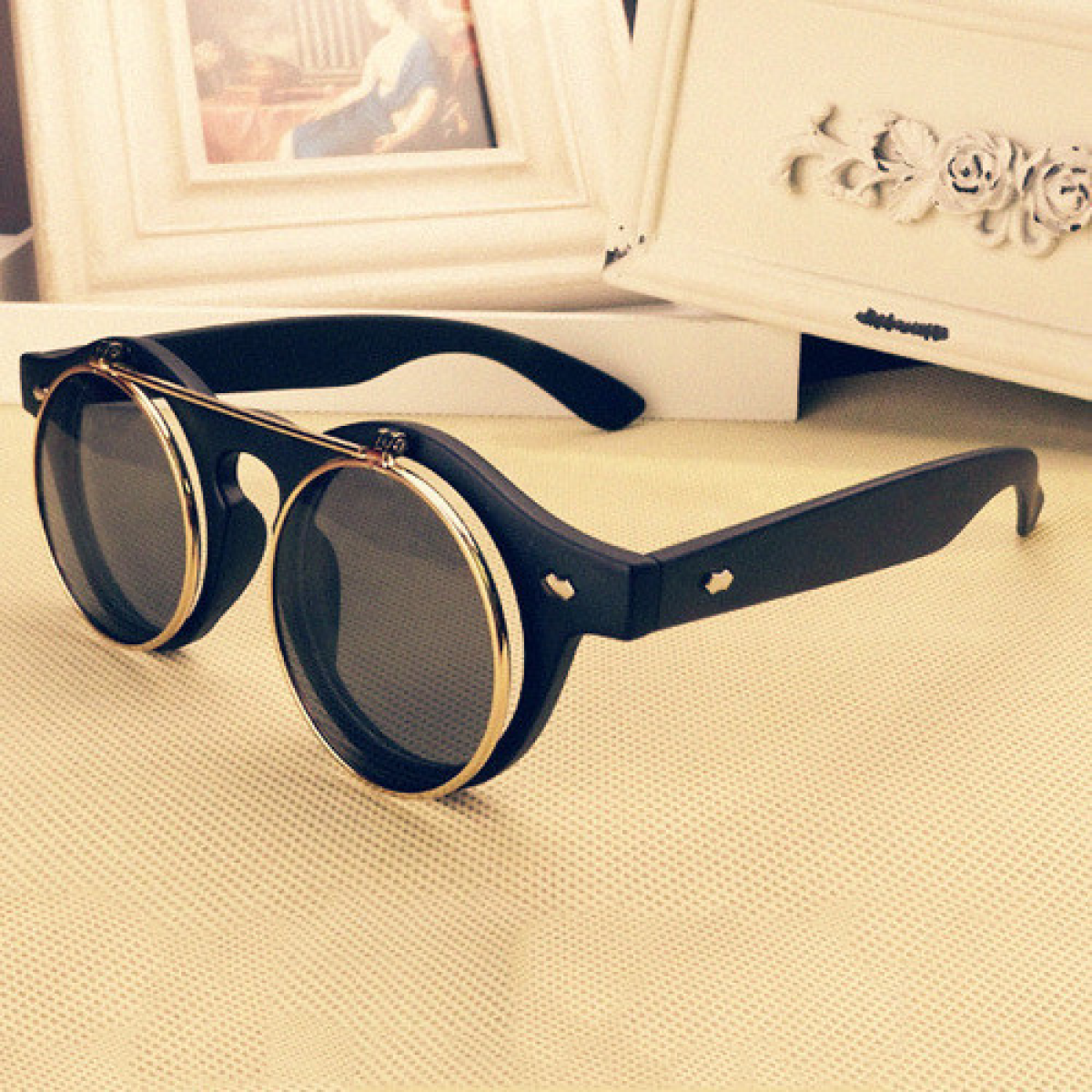 Модні Сонцезахисні окуляри Ретро Подвійні Фліп Панк Чорний Каркас
