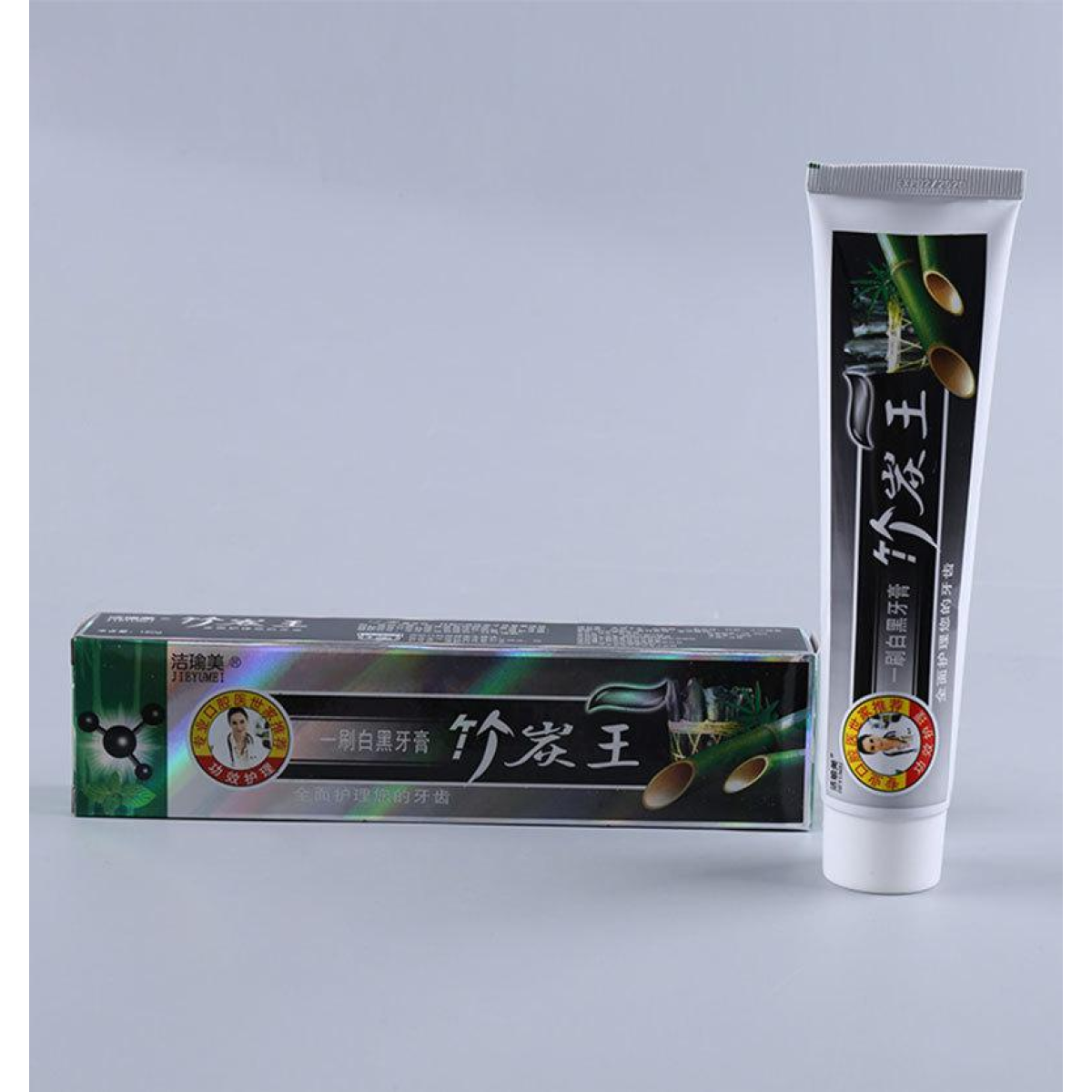 Активний компонент — частинки бамбукового вугілля — додані в пасту. Чудово очищає і злегка вибілює зуби. Треба пам“ятати, що вибілювання піддаються тільки свої рідні, не відновлені та не вставлені зуби. Тобто пломби та коронки очистяться від нальоту, але не стануть світлішими. Ця зубна паста спочатку ніби проявляє проблемні місця — тобто вугільні частинки збираються в місцях скупчення нальоту. Тому її потрібно дуже ретельно зчищати. Але зате й наліт добре забирається. Ефект вибілювання проявляється поступово, у разі регулярного чищення.