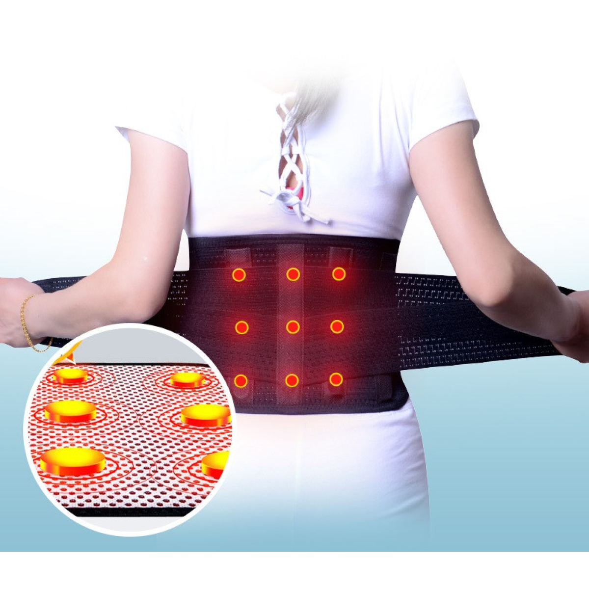 Рекомендації щодо використання: Для використання поясів необхідно змочити водою робочу поверхню та прикласти до ділянки тіла, яка викликає занепокоєння. Під час використання поясів необхідно вибирати час процедури особисто для себе, попри своє самопочуття, оскільки в кожної людини різний фізичний стан. Але, не можна робити сеанс процедури більш ніж 30 хвилин, щоб уникнути негативних наслідків, наприклад, опік шкіри.