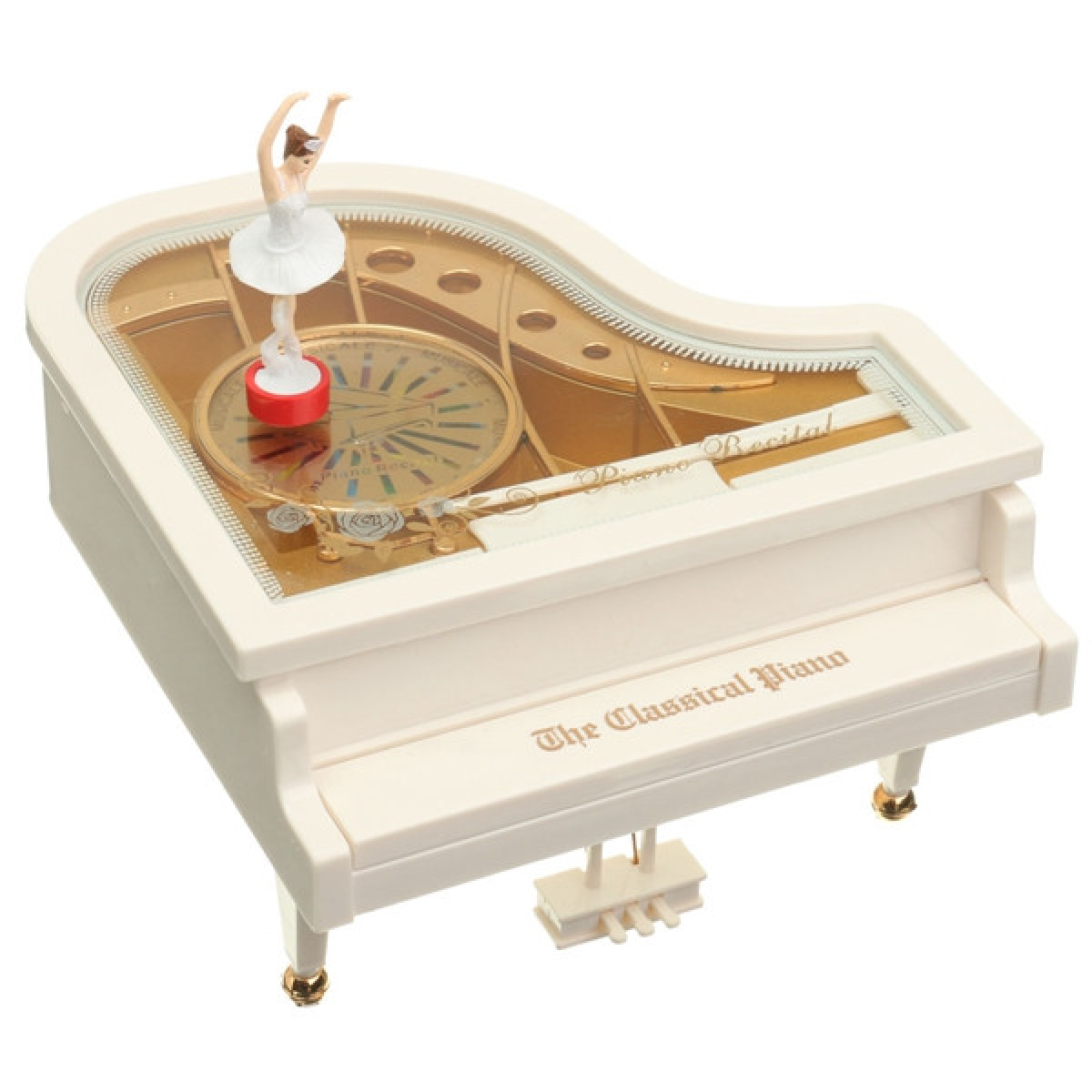 Музична скринька піаніно, Білий Рояль із Балериною 15х16см