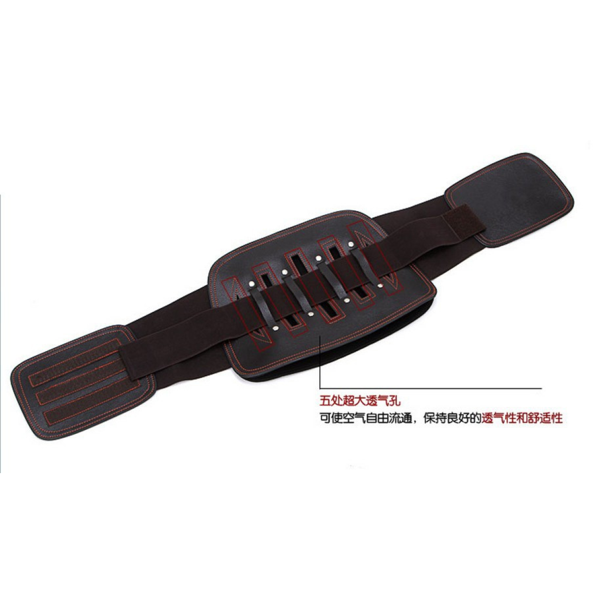 6. Прикладіть пояс внутрішньою стороною до попереку, увігнутим боком назовні, коли одягаєте пояс, велика пластина має бути внизу, а маленькі накладаються поверх. Оберніть пояс навколо талії, застебніть нейлонову липучку, щоб міцно зафіксувати пояс.