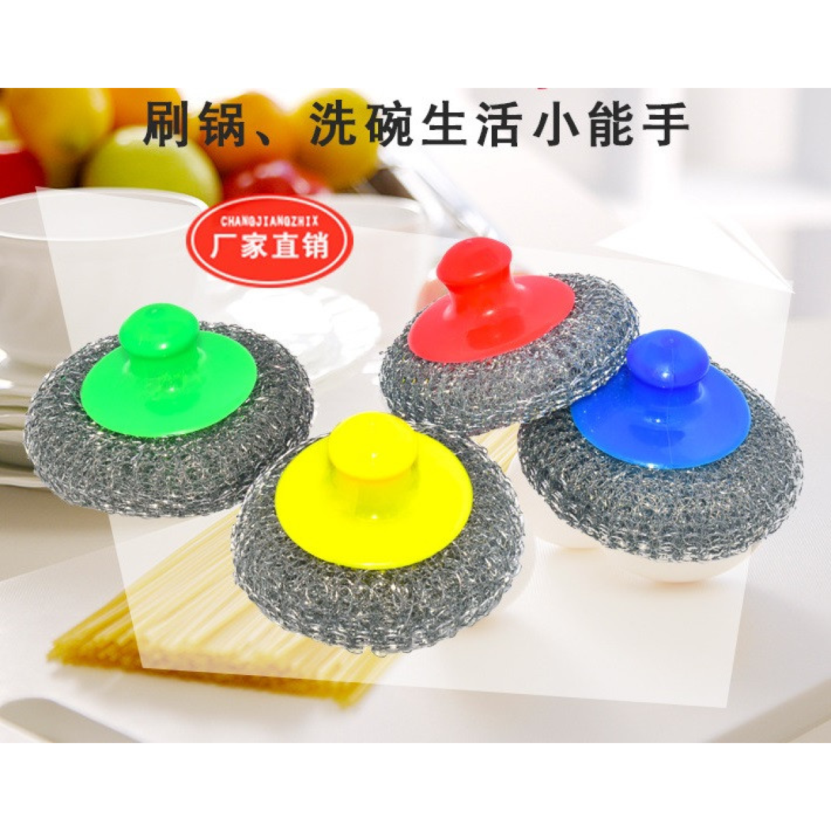 Мочалка для посуду “Холяйка“, металева, з пластиковою ручкою