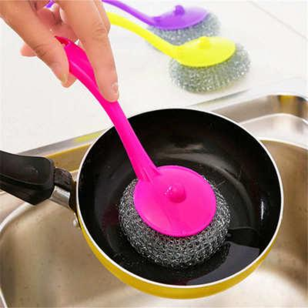 Мочалка для посуду “Хожняяшка“, металева, з довгою пластиковою ручкою