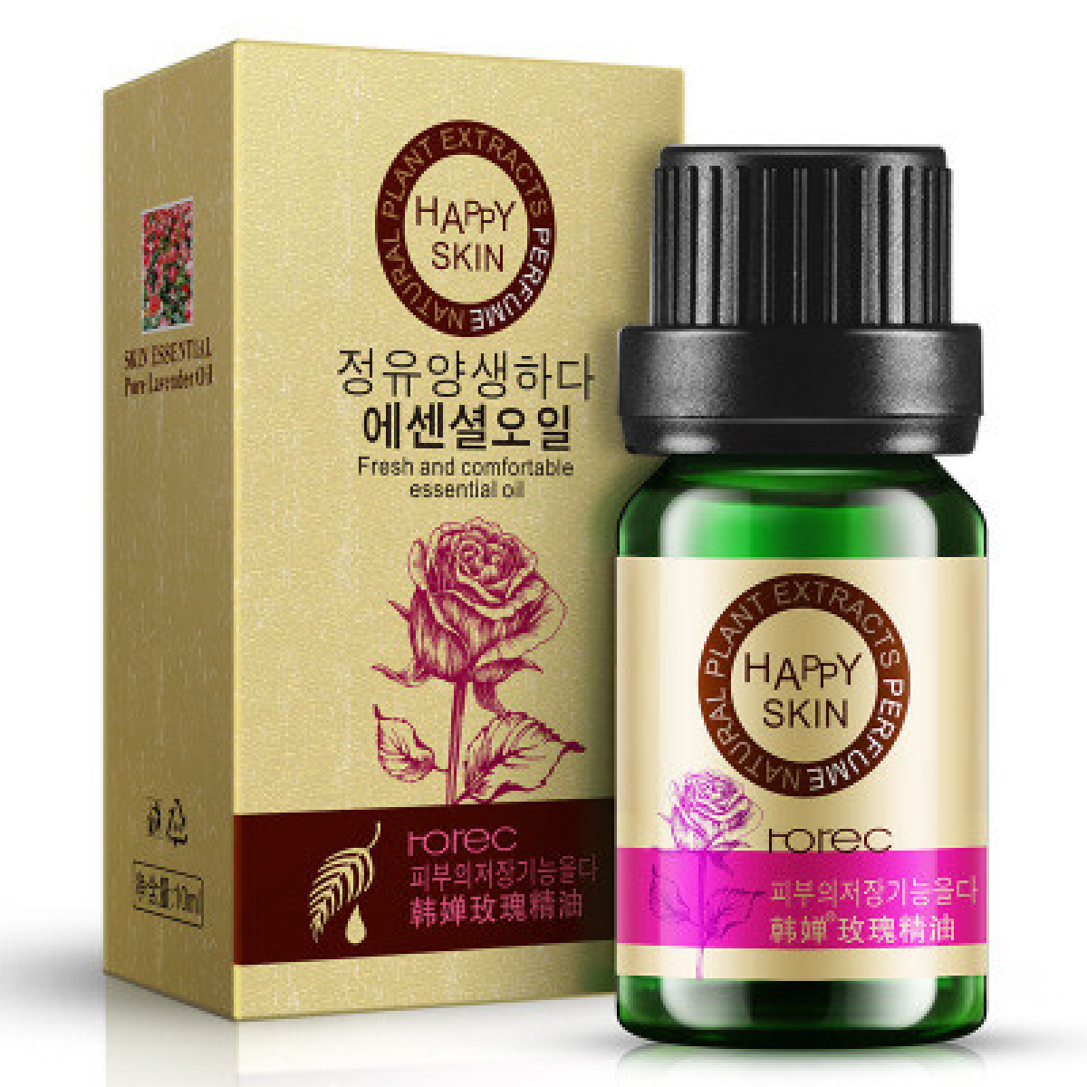 Ефірна олія троянди, завдяки своїм омолоджувальним властивостям, рекомендується використовувати для шкіри, що в“яне та зріла, яка вимагає своєчасної підтяжки та усунення візуальних зморщок. Крім того, ця олія бере участь у регенерувальному процесі клітин, тобто сприяє їх продуктивному омолодженню, унаслідок чого з“являється чіткий овал обличчя, розгладжуються неглибокі мімічні зморшки, зникають вікові плями пігментації, а шкірні покриви стають еластичнішими та пружнішими, поліпшуються колір обличчя. Ефірна олія троянди вважається справжнім порятунком для чутливої шкіри, яка потребує додаткового якісного догляду. Під його безпосереднім впливом спостерігається заспокоєння подразненої шкіри та усунення почервоніння, а всі запальні процеси стають менш вираженими, повертаючи шкірним покривам природний колір.