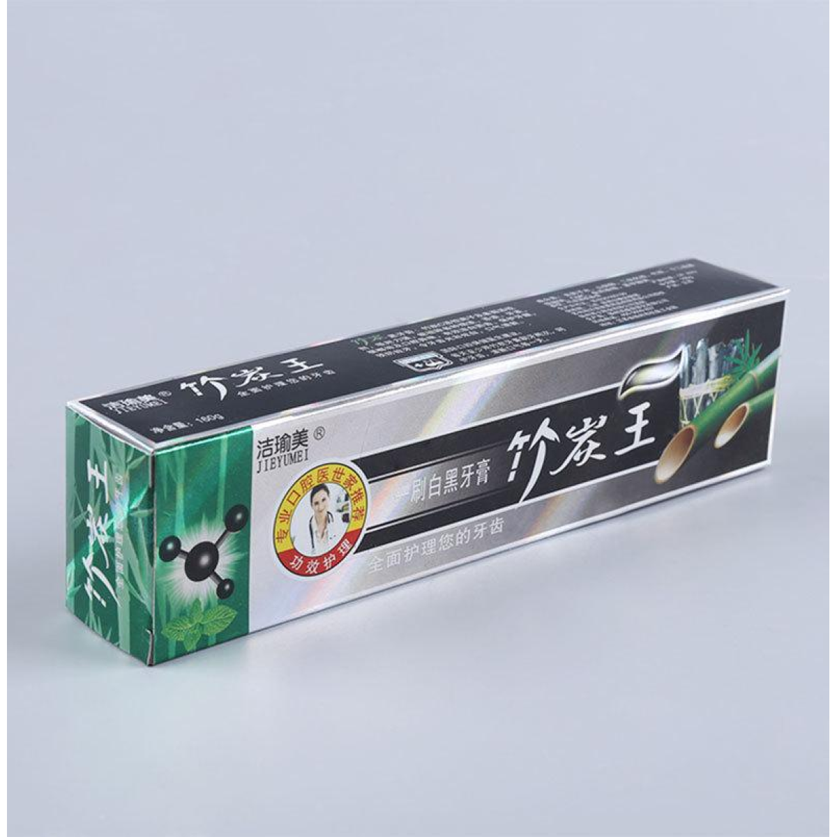 Активний компонент — частинки бамбукового вугілля — додані в пасту. Чудово очищає і злегка вибілює зуби. Треба пам“ятати, що вибілювання піддаються тільки свої рідні, не відновлені та не вставлені зуби. Тобто пломби та коронки очистяться від нальоту, але не стануть світлішими. Ця зубна паста спочатку ніби проявляє проблемні місця — тобто вугільні частинки збираються в місцях скупчення нальоту. Тому її потрібно дуже ретельно зчищати. Але зате й наліт добре забирається. Ефект вибілювання проявляється поступово, у разі регулярного чищення.